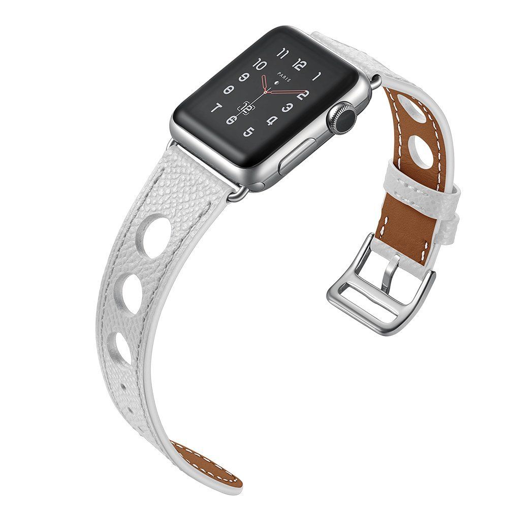 Эта полоса за 23 доллара сделана из натуральной кожи и легко регулируется в зависимости от размера вашего запястья. Он поставляется только в размере 42 мм.