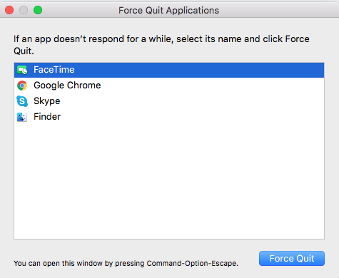 - Нажмите три кнопки (Command, option и Escape) на клавиатуре одновременно.