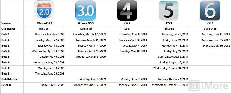 Вот график бета-тестирования для выпуска iOS 6 этого года: