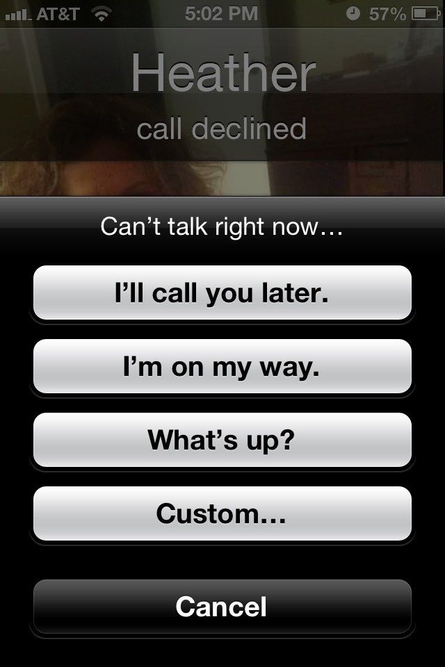 - На этом этапе вызов будет отклонен, и вы увидите некоторые параметры для готовых сообщений, которые вы можете отправить, или вы можете выбрать пользовательские для создания своих собственных.