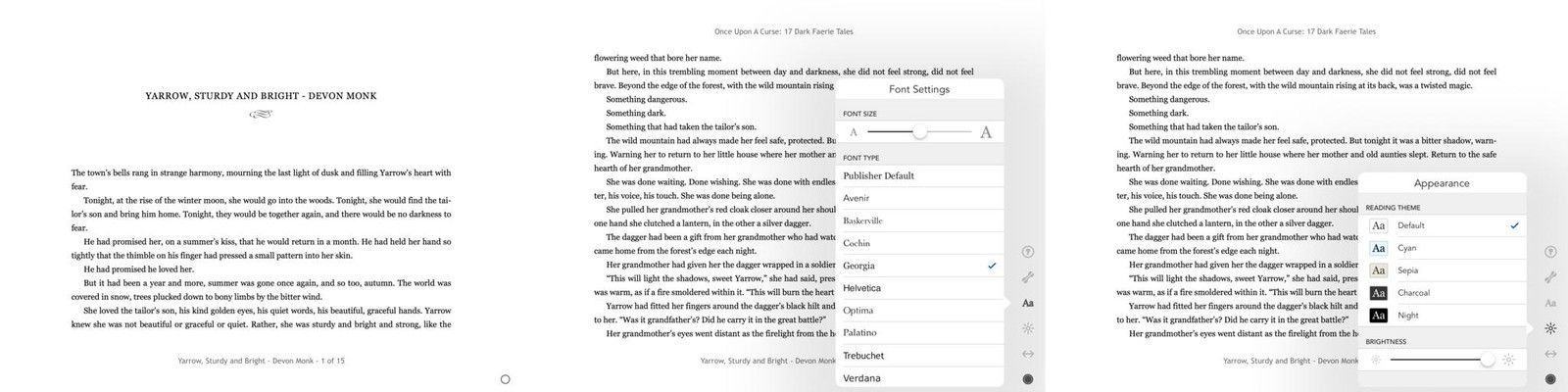 - Как и большинство приложений для электронных книг, вы можете настроить шрифт и многое другое на свой вкус.