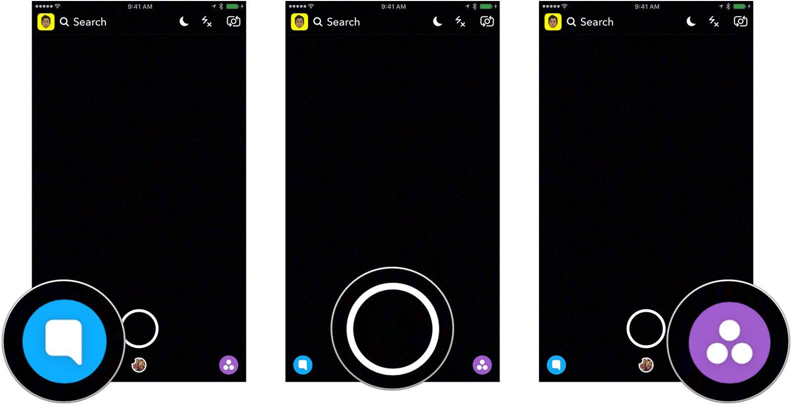 - Кнопка чата: при нажатии этой кнопки вы получаете список сообщений чата Snapchat.