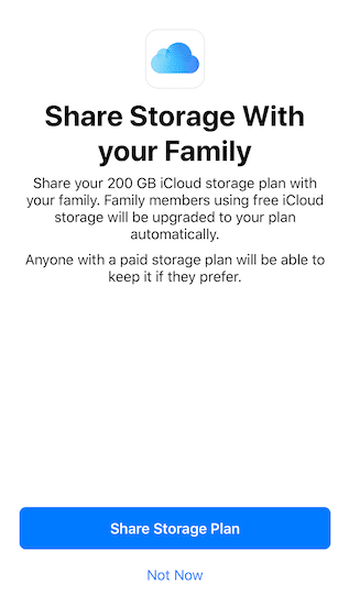 Скажем, вы получили приглашение поделиться планом хранения iCloud:
