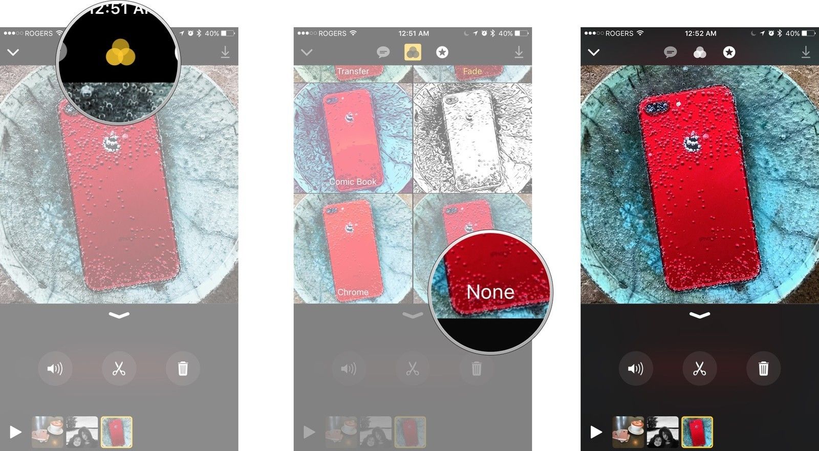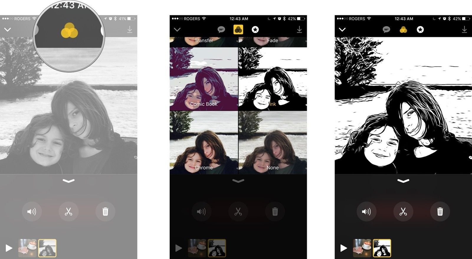 Clips использует те же фильтры, что и Camera и Photos, но также имеет некоторые новые эффекты. Вот они сверху вниз слева направо в галерее: