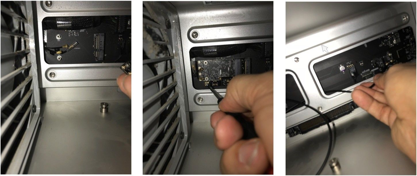 - Внимательно подключите ранее подключенную антенну Wi-Fi кабели к соответствующему порту на новой карте в соответствии со схемой, предоставленной OSXwifi.com.