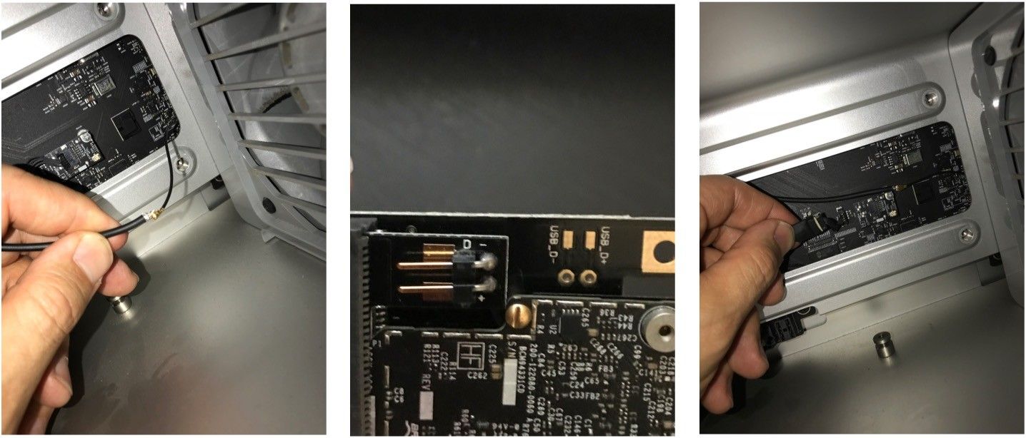 - Внимательно отключить антенны Wi-Fi и Bluetooth принимая к сведению размещение на доске. В моем случае антенна с надписью «1» подключена к разъему J2, а антенна с надписью «3» подключена к разъему J1. Антенна с надписью «2» не была подключена.