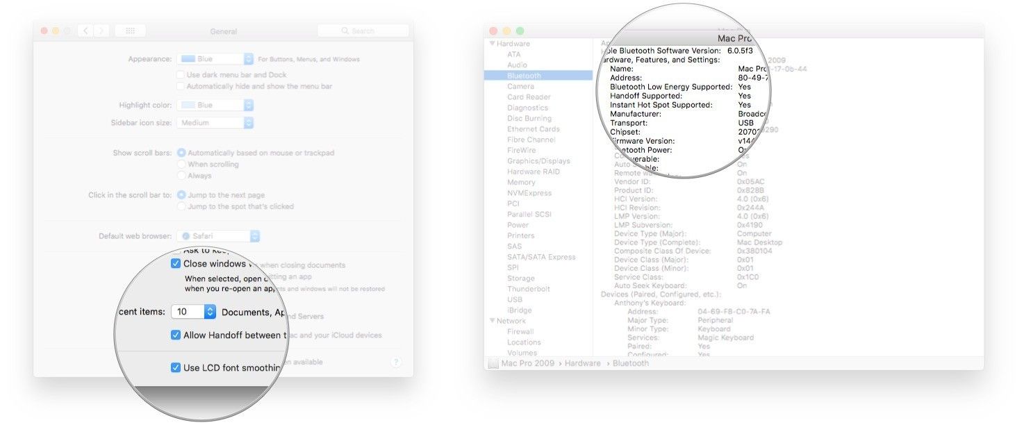 После перезапуска может потребоваться повторное сопряжение подключенных устройств Bluetooth. Если вы используете MacOS до El Capitan, все, что вам нужно сделать, это включить Handoff в Системные настройки> Общие и если у вас есть Apple Watch, включите разблокировку с помощью часов в Безопасность Конфиденциальность.