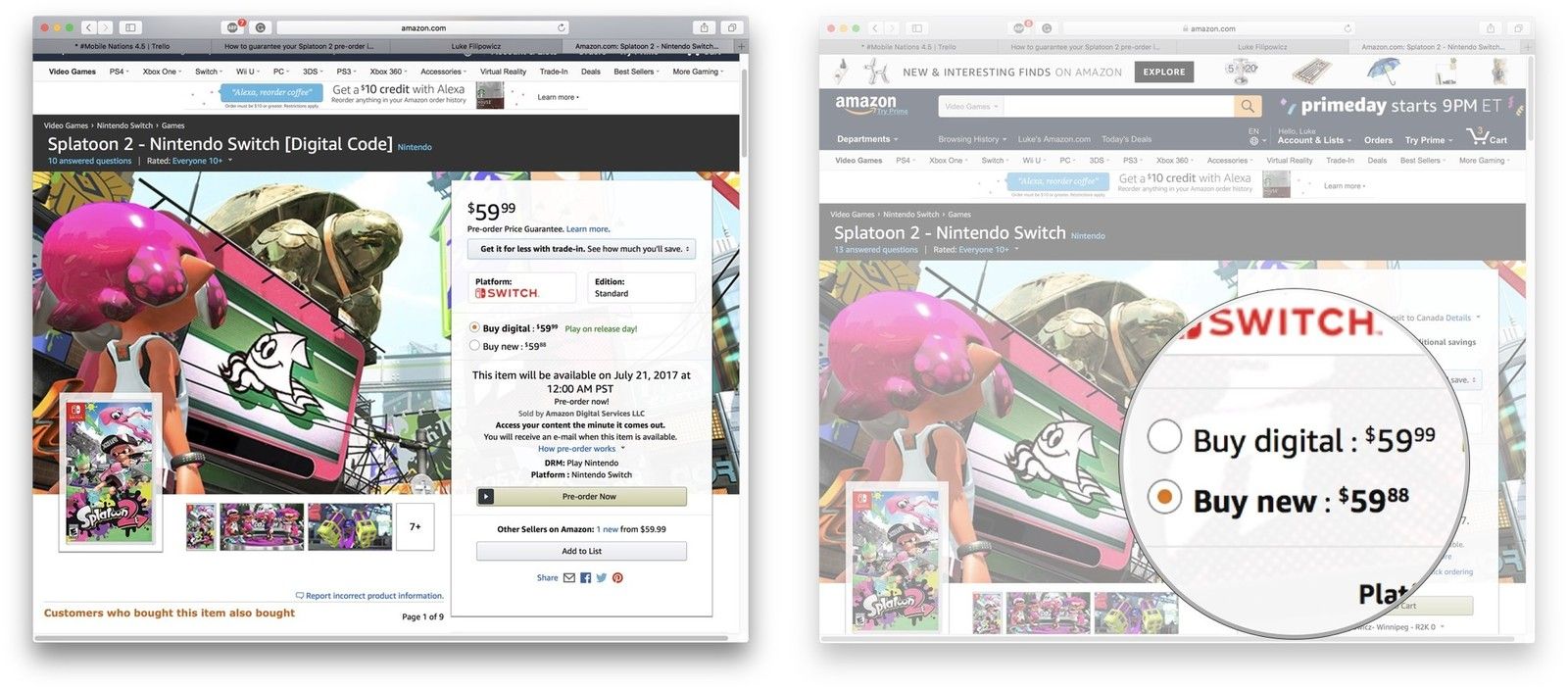 Как заказать физическую или цифровую копию Splatoon 2 у Amazon.