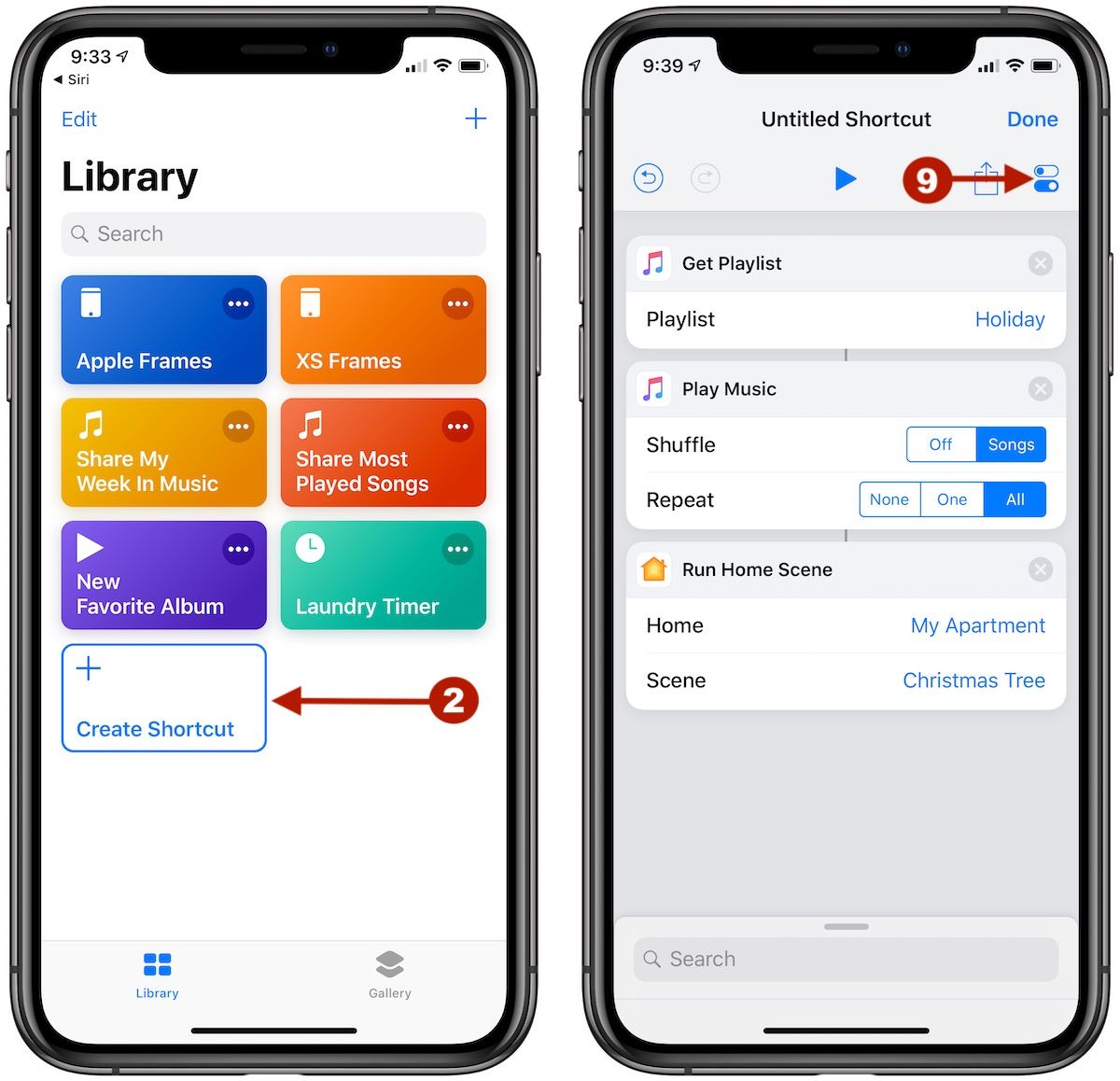 В приведенном ниже примере мы создали праздничный ярлык «Siri», который включает огни рождественской елки (подключенный к коммутатору iDevices) и перетасовывает плейлист праздничного дня в любое время, когда мы говорим: «Привет, Сири, Счастливого Рождества». Также помните, что вам понадобится подписка «Apple Music», источники света с поддержкой HomeKit или другие устройства, а также обновленное приложение iOS «Shortcuts».