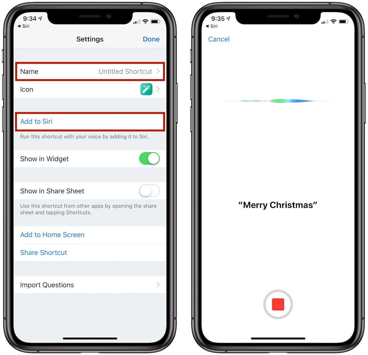 - Назовите ярлык и нажмите «Добавить в« Сири »», чтобы записать предпочитаемую триггерную фразу.