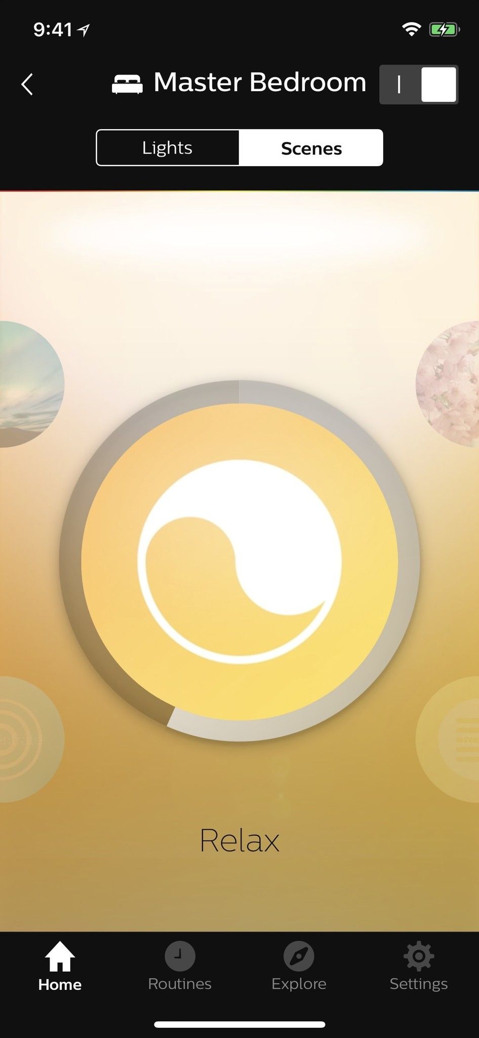 Филиппа Хюэ Расслабьтесь сцена сместит цветовую температуру от синей длины волны света и немного приглушит. Это именно то, что вам нужно, так как вы начинаете растягиваться и расслабляться на вечер.