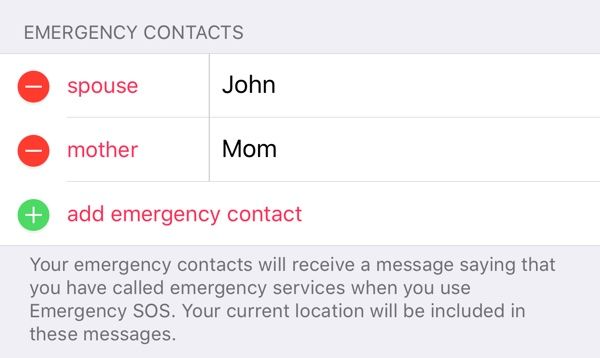 Вы можете добавить несколько экстренных контактов, каждый из которых получит текстовое сообщение с указанием вашего местоположения, если вы когда-либо будете использовать функцию Emergency SOS.