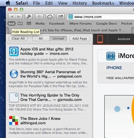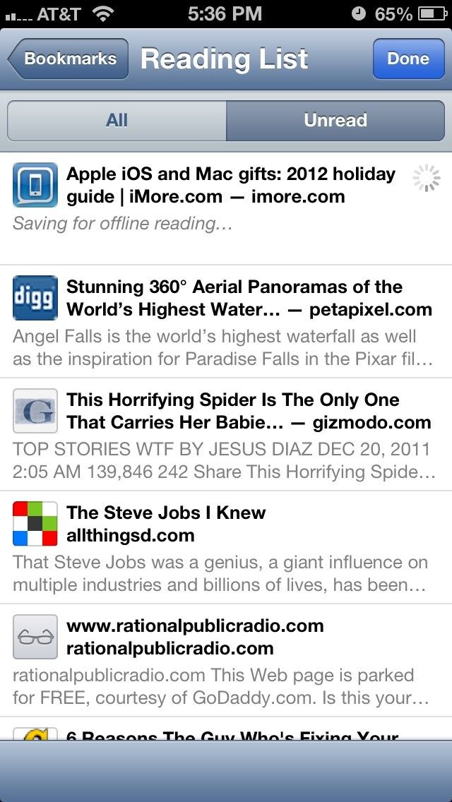 - Отсюда вы можете нажать на любую историю, которую вы сохранили в Списке чтения, и Safari загрузит ее.