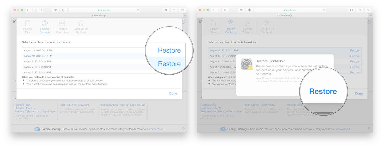 Если вам действительно нужно восстановить, но также необходимо сохранить недавно добавленные контакты, сначала экспортируйте их на свой Mac, чтобы вы могли импортировать их после завершения восстановления.