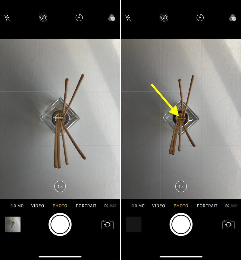 - Совместите плавающее перекрестие с фиксированным перекрестием в центре экрана, отрегулировав угол камеры вашего телефона. Оба перекрестия будут светиться желтым цветом в идеальном положении.