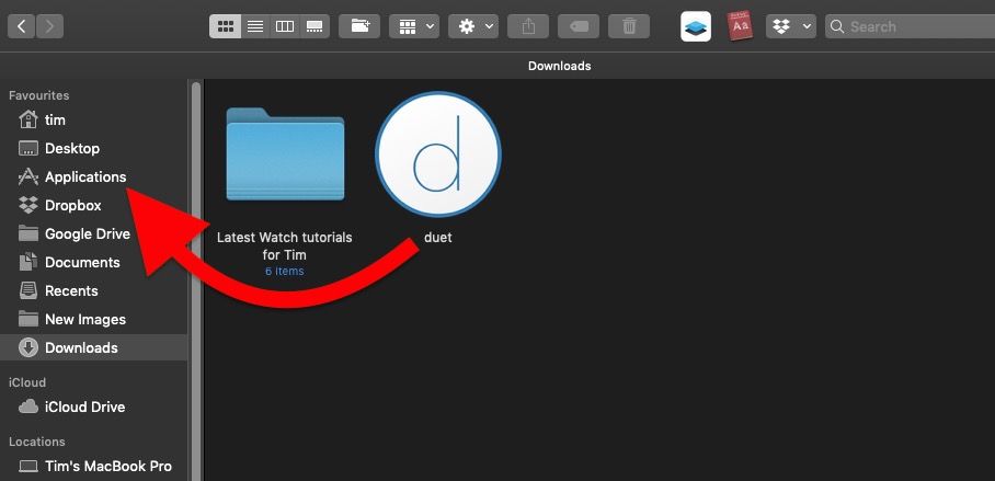- После загрузки клиентского приложения Duet на ваш Mac перетащите его из папки «Загрузки» в Приложения папка.