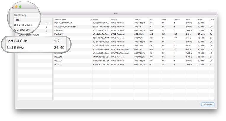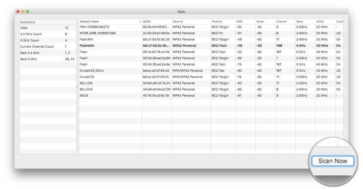 Вам нужно будет просканировать свой регион на наличие всех сетей Wi-Fi, к которым ваш Mac может подключиться, запустив приложение Wireless Diagnostics.