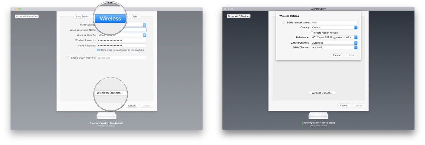 Настройте канал 2,4 ГГц на базовой станции аэропорта