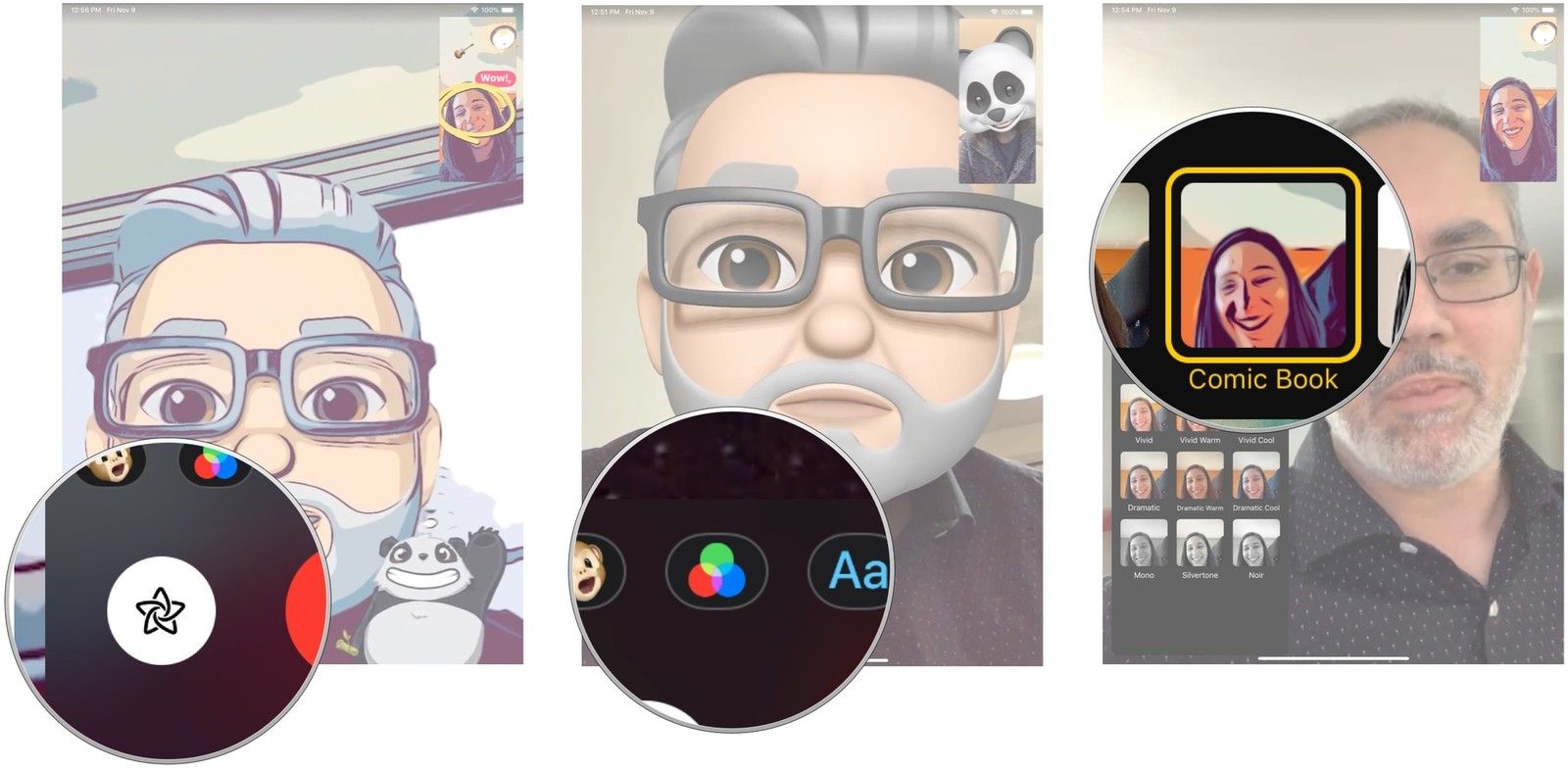 Фильтры изменяют общий вид всего экрана. Это может быть тонким, как добавить немного тепла или прохлады к изображению, или это может быть смелым, как превращение всего черного и белого. Вы даже можете сделать макияж, нарисованный акварелью, чернилами или комиксами, в чате в режиме реального времени в FaceTime.