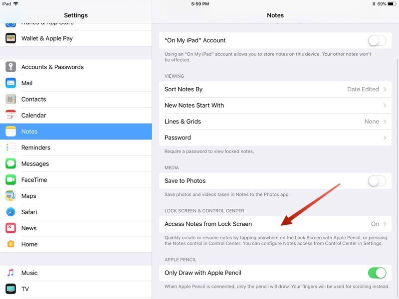 Если вы не хотите, чтобы Apple Pencil открывал приложение Notes, вы можете отключить Instant Notes в приложении Настройки.