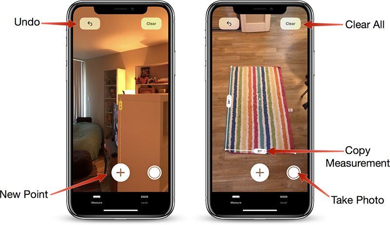 Одной из новых функций в iOS 12 является приложение дополненной реальности под названием «Измерить», разработанное Apple для облегчения измерения различных реальных объектов с использованием методов трехмерного пространственного обнаружения.