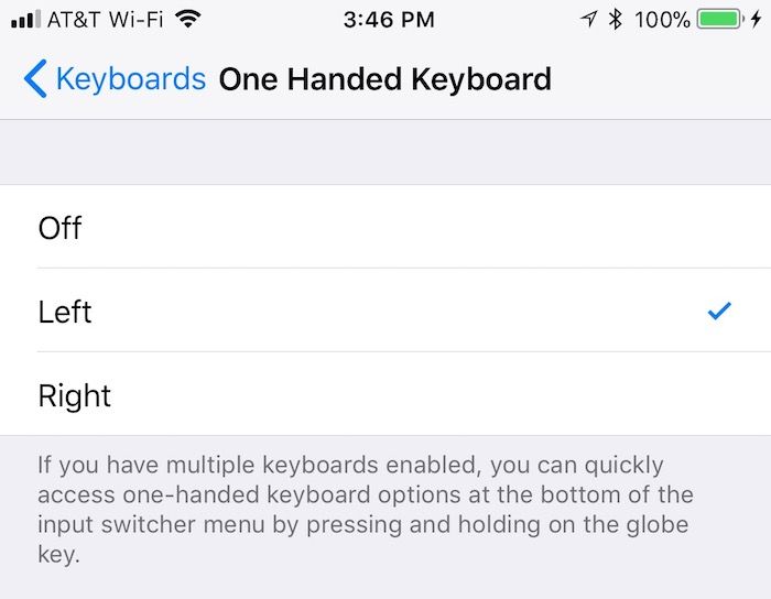 В iOS 11 скрыто множество небольших настроек и изменений функций, и одним из них является вариант для клавиатуры одной рукой. С помощью одноручной клавиатуры вся экранная клавиатура может быть сдвинута влево или вправо, чтобы вы могли печатать более удобно одной рукой, даже с таким большим телефоном, как iPhone 7 Plus.