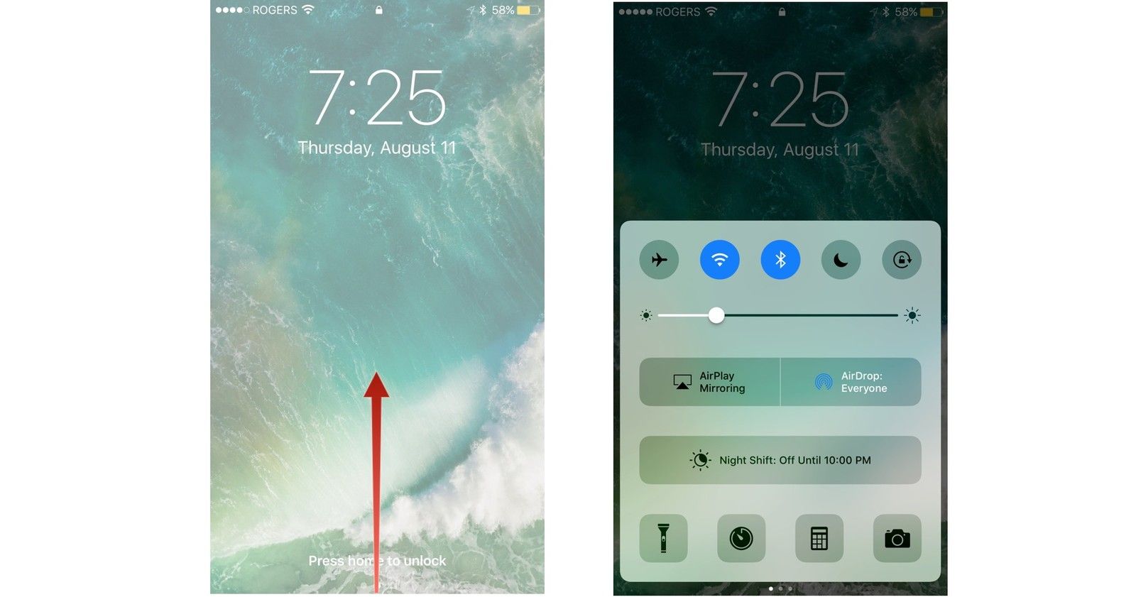 Доступ к Центру управления можно получить из любого места, включая экран блокировки, главный экран и внутренние приложения. Это всегда доступно и всегда одинаково.