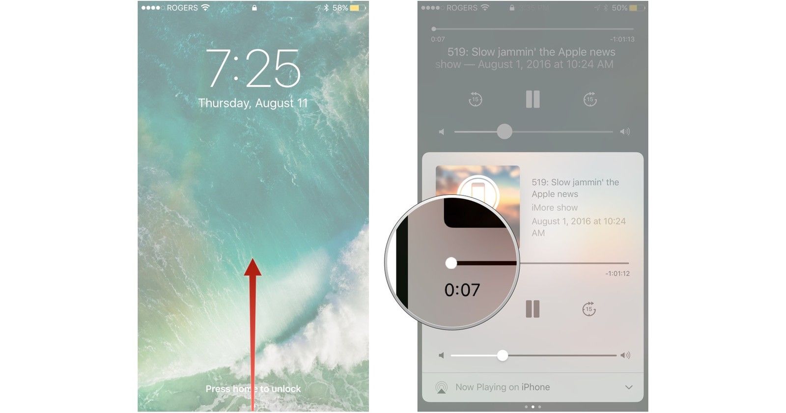 Если вы хотите перейти на более раннюю или более позднюю позицию в вашей песне, аудиокниге или подкасте, вы можете перетащить скруббер именно в это место.
