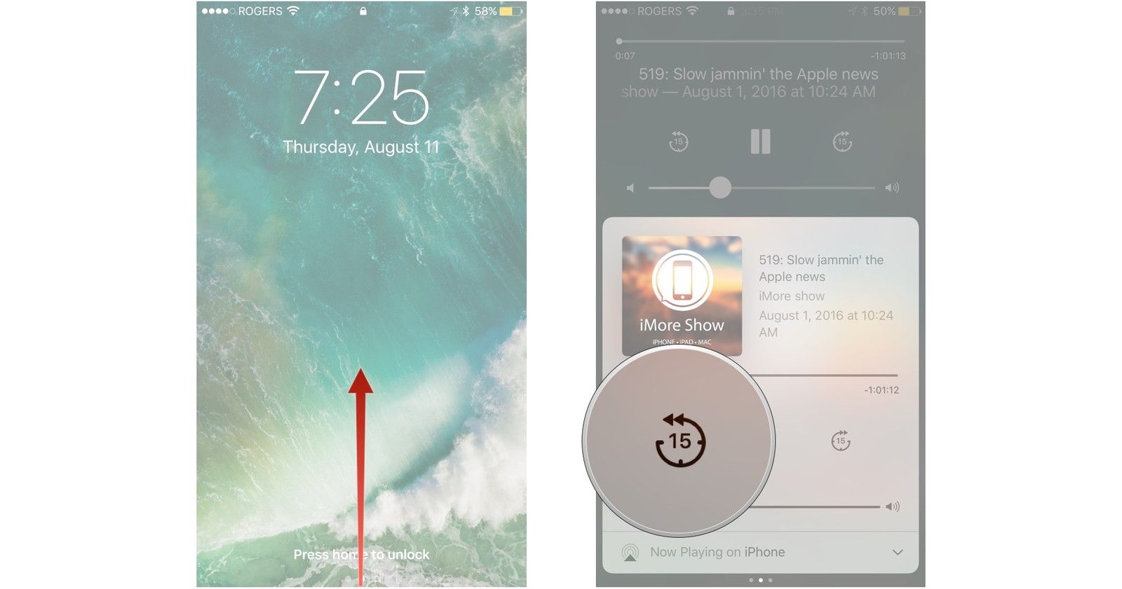 Вы можете пропустить трек назад, перемотать назад или вернуться назад на 15 секунд, если вы что-то пропустили в подкасте.