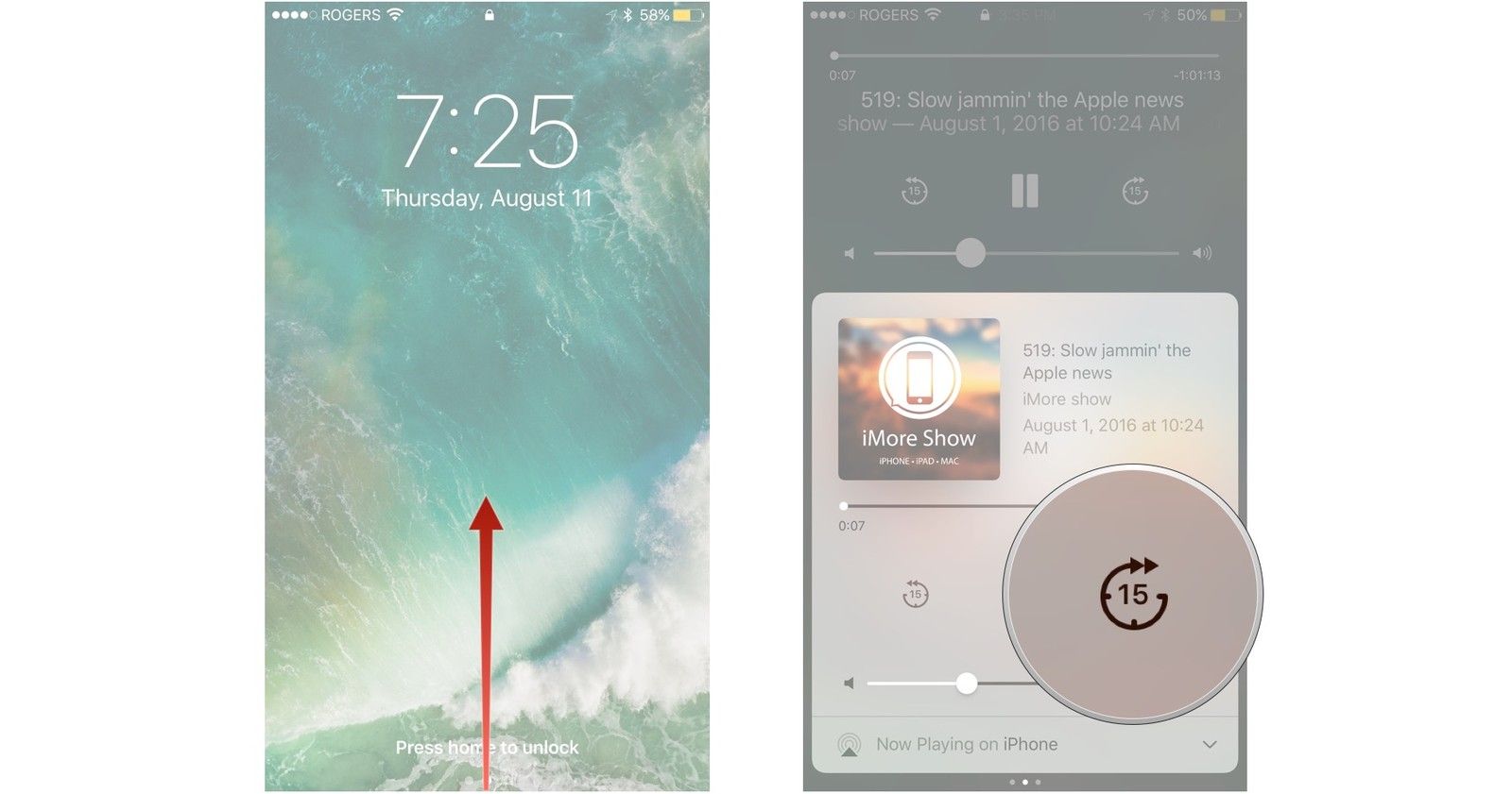 Вы можете перейти к следующему треку, перемотать вперед или перейти на 15 секунд вперед, если вы хотите пропустить что-то в подкасте.