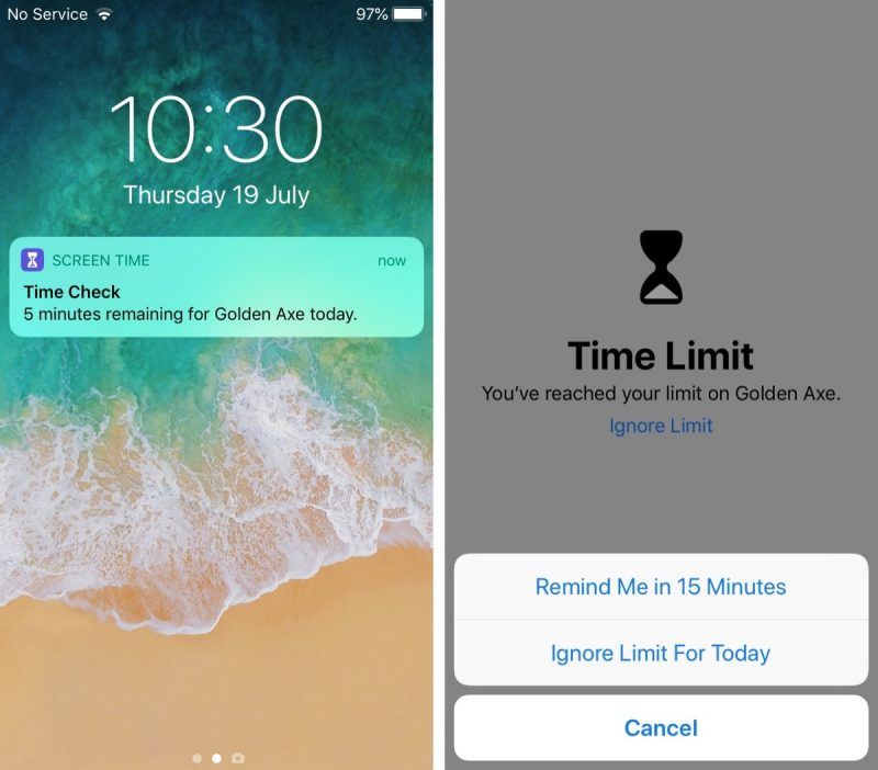 Если вы хотите переопределить пользовательский лимит, просто нажмите Игнорировать лимит. Затем вы можете выбрать либо Напомнил мне за 15 минут или же Игнорировать лимит на сегодня.