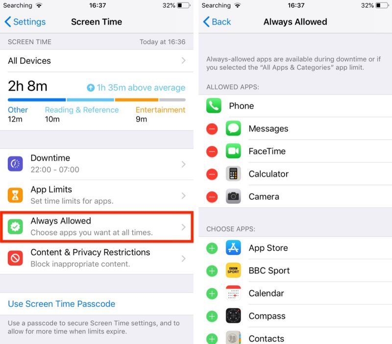 Если есть определенные приложения, которые вы хотите оставить доступными во время простоя, вы можете добавить их в свой список разрешенных приложений, расположенный в Настройки -> Время экрана -> Всегда разрешено.