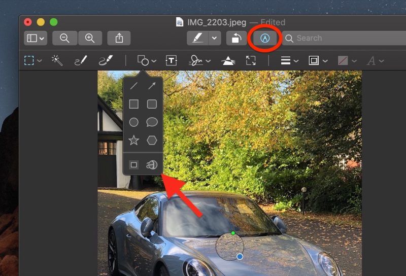 Вы можете получить доступ к инструменту Loupe, выбрав Инструменты -> Аннотировать -> Лупа из строки меню предварительного просмотра или путем включения наценка панель инструментов, а затем нажмите правый нижний значок в форма меню.