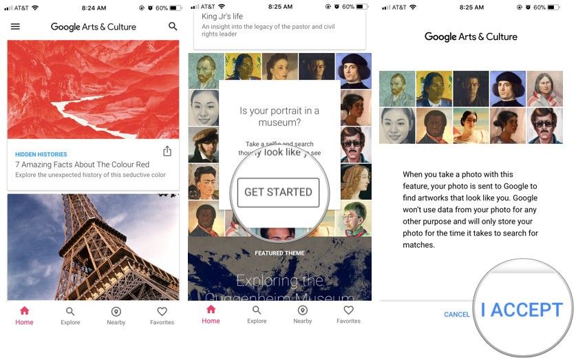 Если вы можете отправить свою фотографию в Google, чтобы найти изображение, похожее на вас, нажмите Я принимаю Я согласен. (В противном случае вы не сможете использовать эту функцию.)