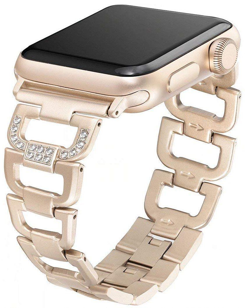 Для большего количества поп-музыки эта группа содержит фальшивые бриллианты / стразы с более широкими пробелами в каждой ссылке, доступные в серебре, золоте, черном и розовом золоте. Это идеальный наряд для одежды и хорошо сочетается с цветами Apple Watch. Доступно для часов 38 мм и 40 мм.
