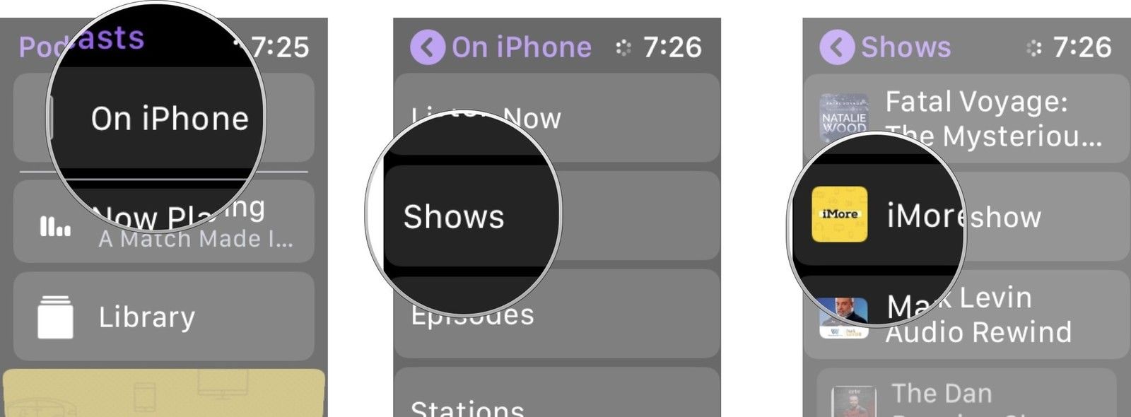 Примечание. В библиотеке вы найдете эпизоды, загруженные на ваши Apple Watch. Эти эпизоды доступны, даже если ваши Apple Watch не подключены к Wi-Fi или LTE.