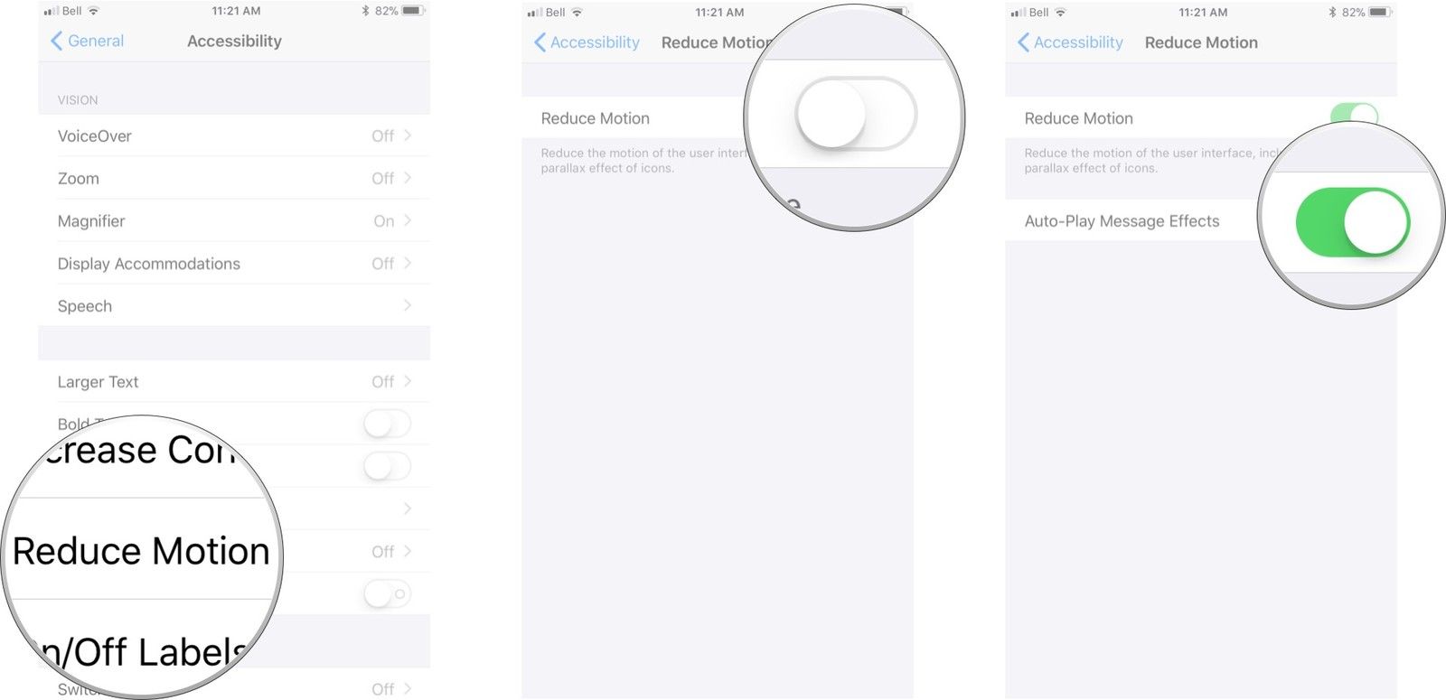 Как использовать эффекты сообщений при включенном уменьшении движения