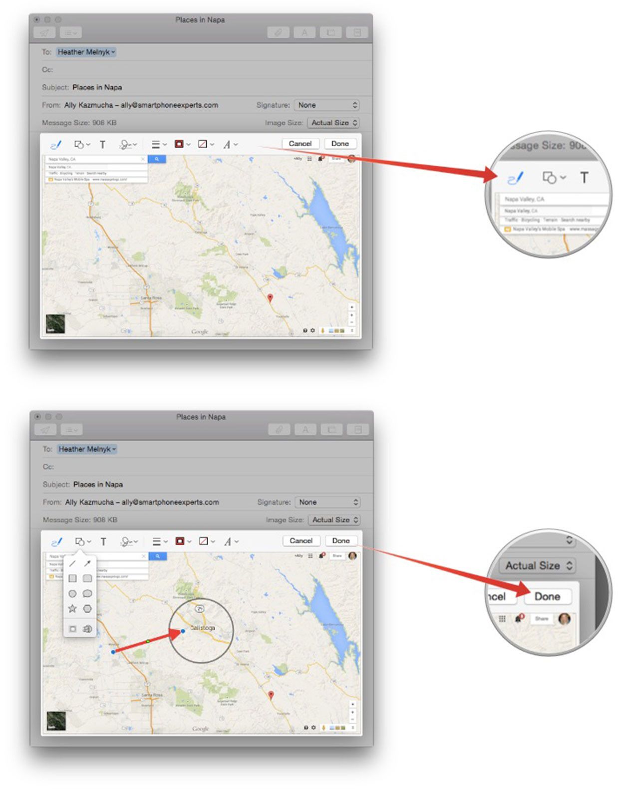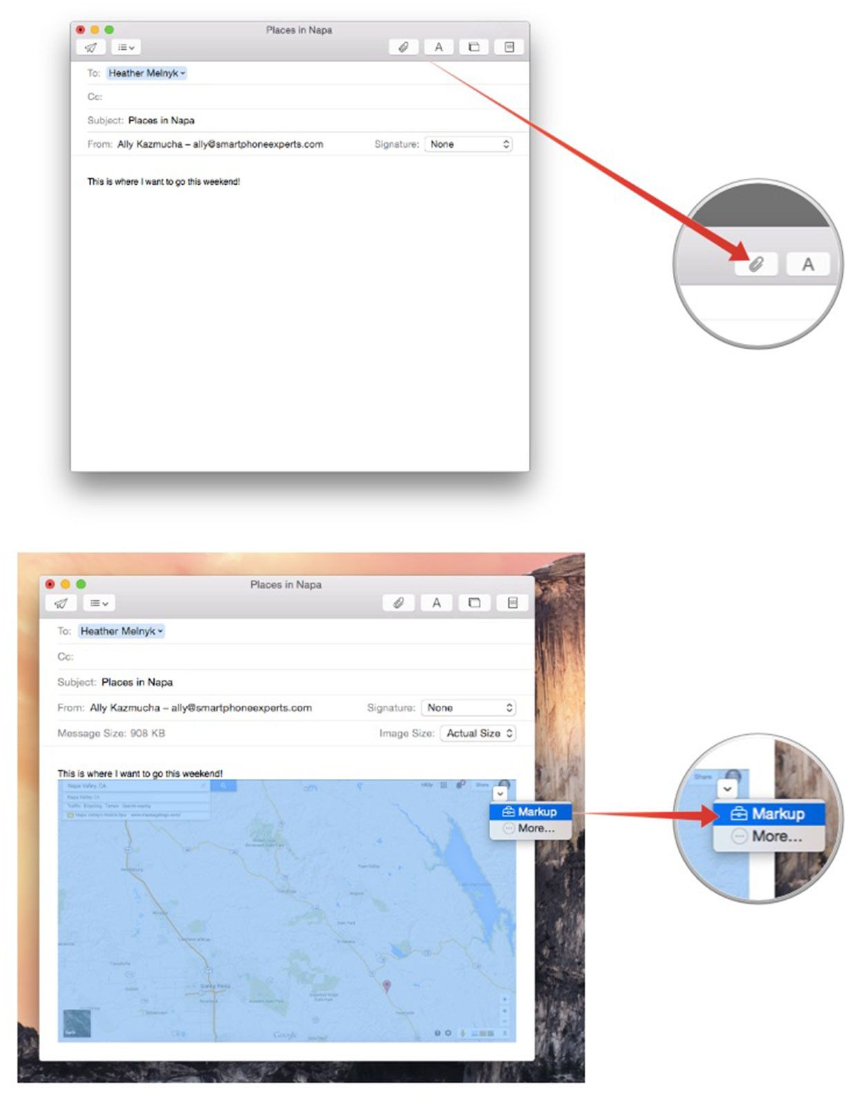 Разметка — это новая функция в приложении OS X Yosemite Mail, которая позволяет легко комментировать и редактировать изображения встраиваемыми. Несмотря на то, что вам по-прежнему нужна продвинутая графическая программа для интенсивного редактирования, разметка позволяет чрезвычайно легко донести свою точку зрения без необходимости запуска Photoshop, Acorn или чего-то подобного.
