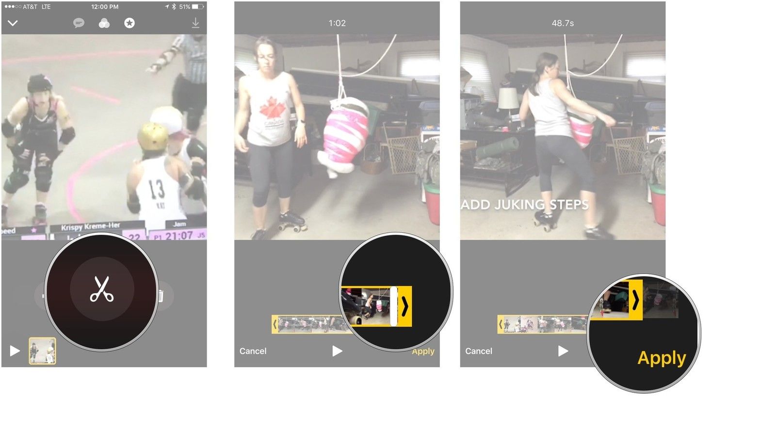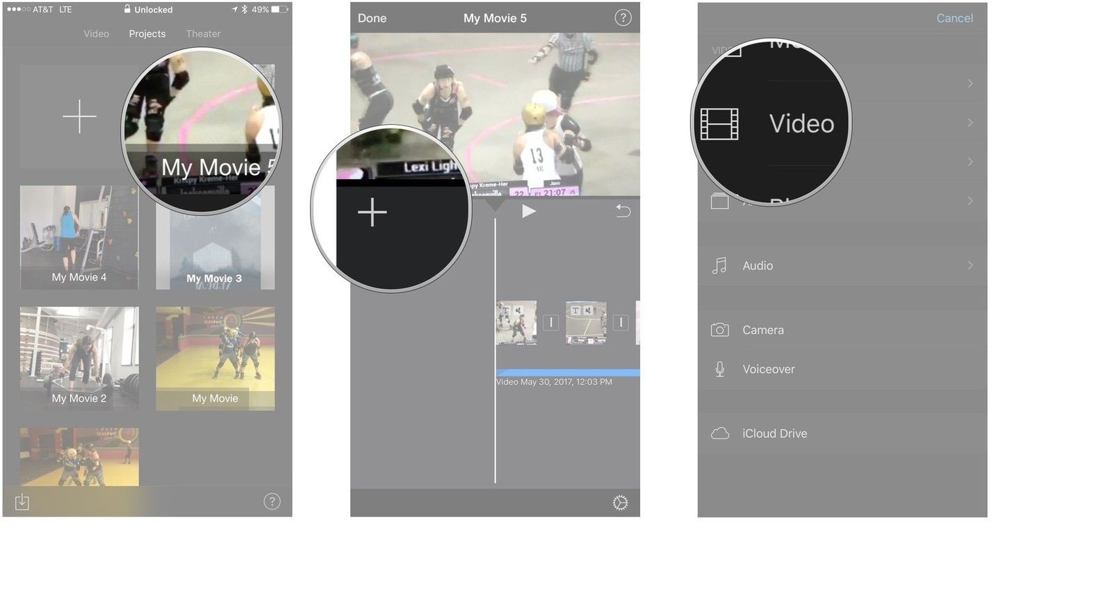 - Тянуть вниз на белую стрелку вниз, чтобы вернуться к главному экрану редактирования клипов.