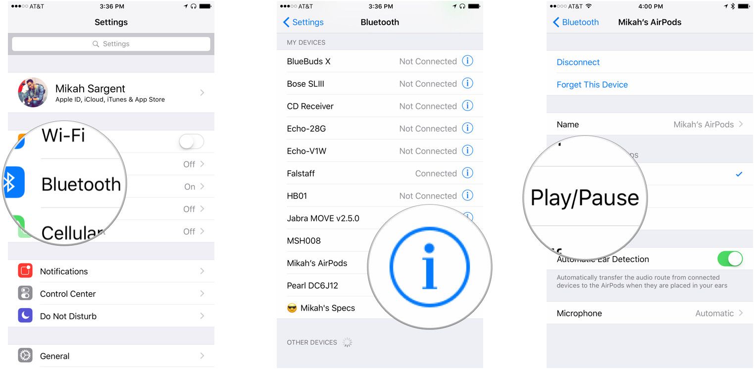 - Нажмите я рядом с пунктом меню для ваших AirPods.