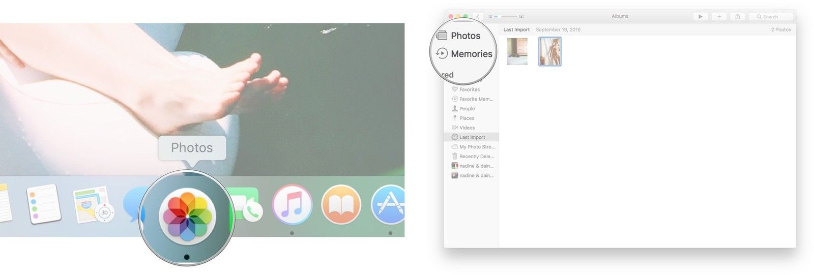 ![Запустите приложение «Фотографии» и нажмите «Воспоминания» в меню в левой части экрана.]()