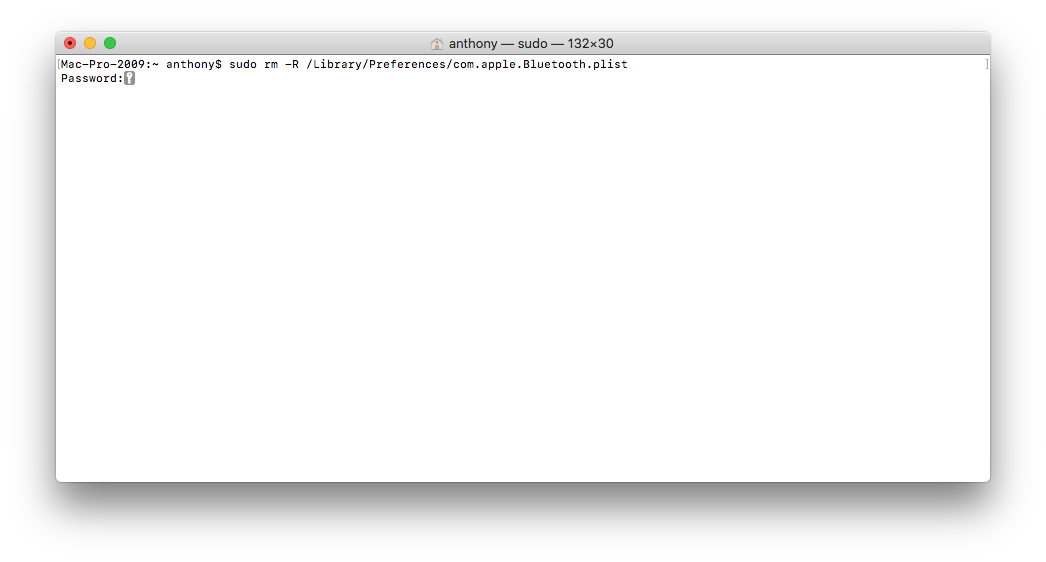 - Тип: sudo rm -R /Library/Preferences/com.apple.Bluetooth.plist.