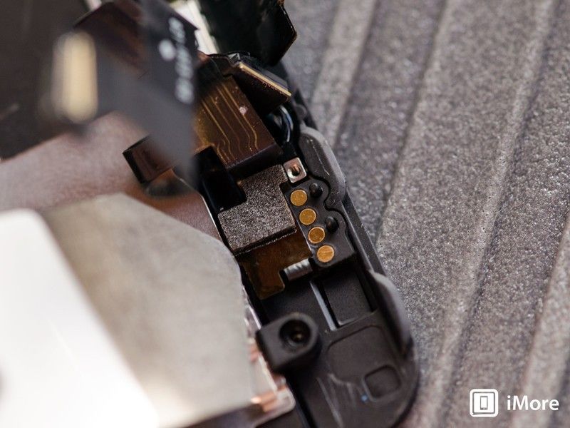 - Убедитесь, что вы не потеряете металлический щиток, закрывающий разъем Touch ID.