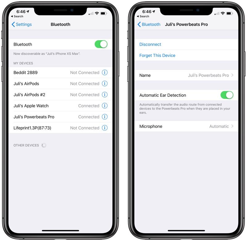 Обратите внимание, что пользовательское имя, назначенное вашим наушникам owerPowerbeats Pro, останется с ними, поэтому вы сможете распознать их как таковые на любых других устройствах, к которым вы их подключите в будущем.