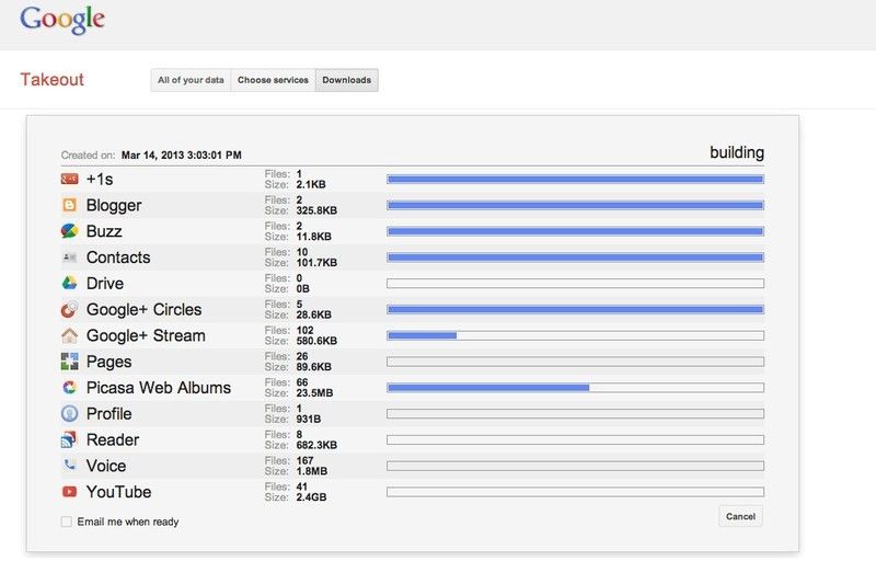 - Google начнет архивировать копию ваших настроек в вашей учетной записи Google. Это может занять некоторое время.