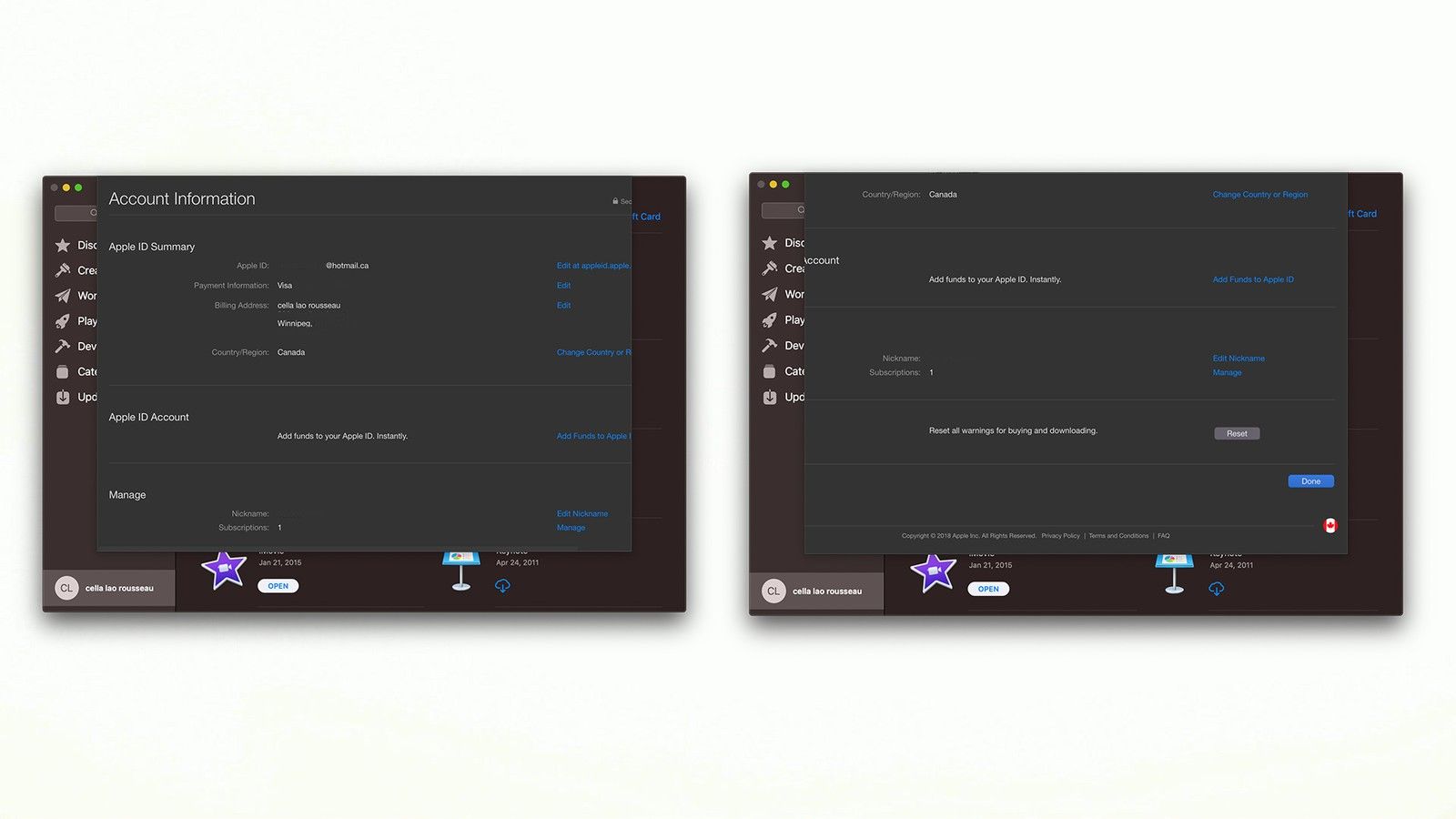 - Нажмите Просмотр информации в правом верхнем углу. Отсюда вы можете редактировать информацию о вашей кредитной карте, платежный адрес, страну и псевдоним. Если вы измените свой псевдоним, он появится в Game Center.