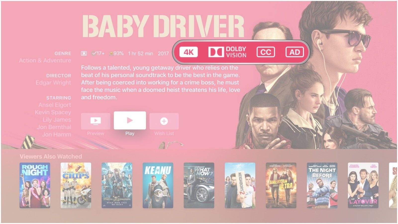 Хотите знать, является ли фильм, который у вас уже есть, или фильм, который вы планируете снимать, в 4K? Просто проверьте значки над заголовком: если вы видите 4K, HDR, или же Dolby Vision, фильм доступен в этих форматах.