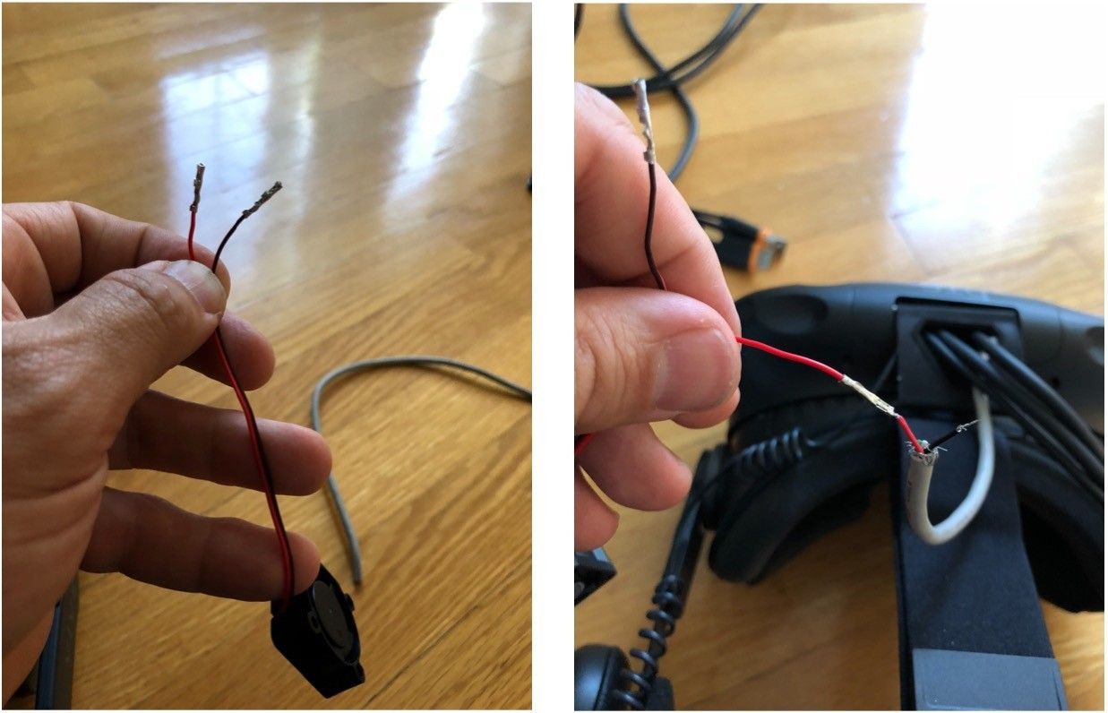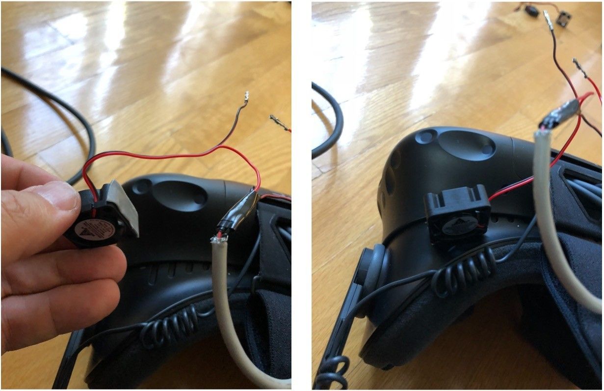 Наконец, я использовал двустороннюю клейкую ленту Scotch, чтобы прикрепить вентиляторы к HTC Vive.