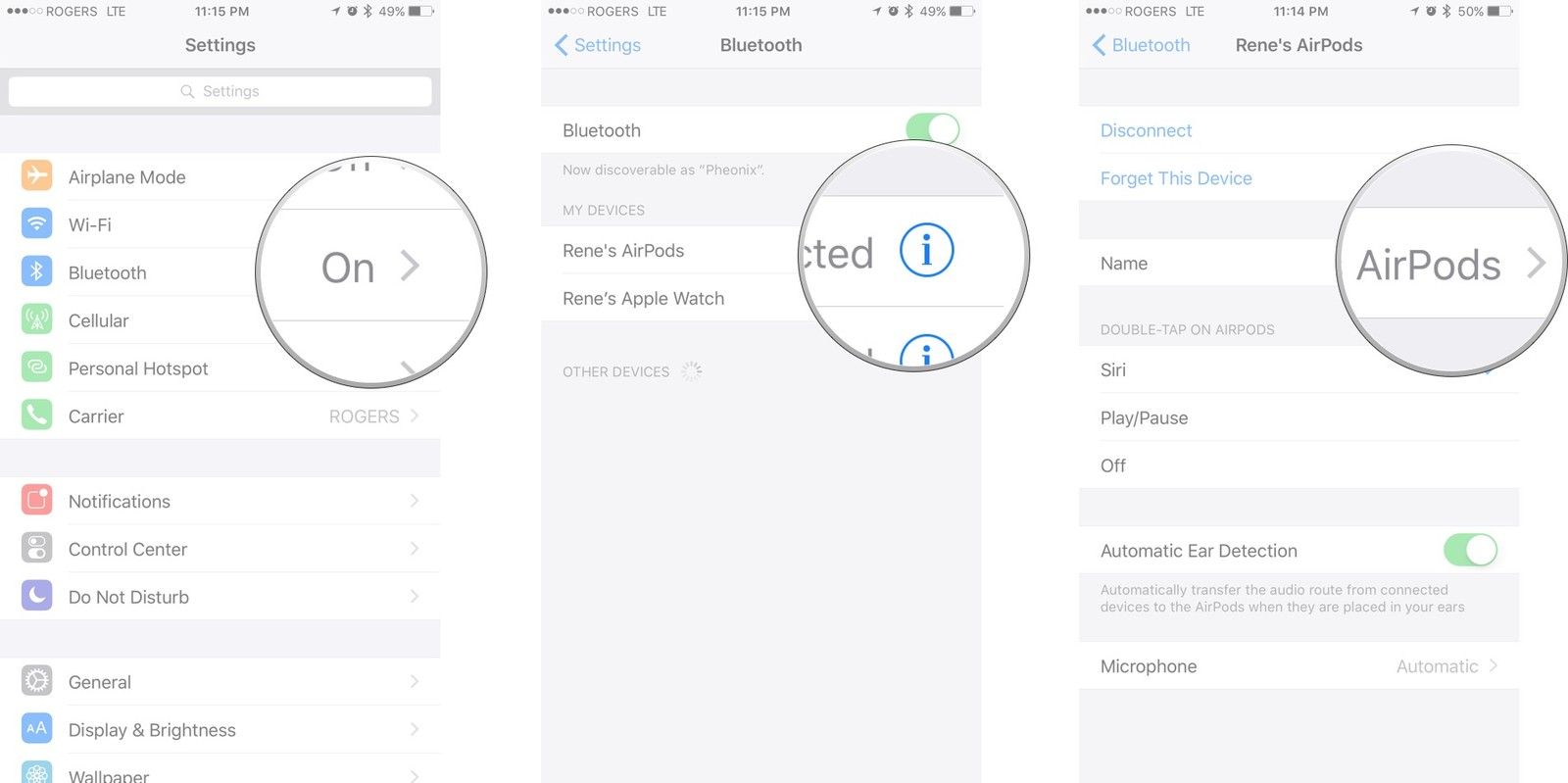Apple назначит имя по умолчанию вашим AirPods при первом сопряжении их с вашим iPhone. Если вы хотите дать им другое имя, вы можете изменить его в любое время.