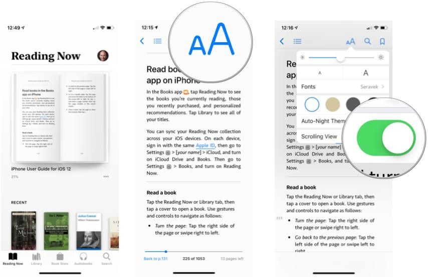 Если вы не хотите, чтобы книга, которую вы читаете, были разделены на отдельные страницы, вы можете просто непрерывно прокручивать книгу. Иногда это проще для чтения одной рукой.